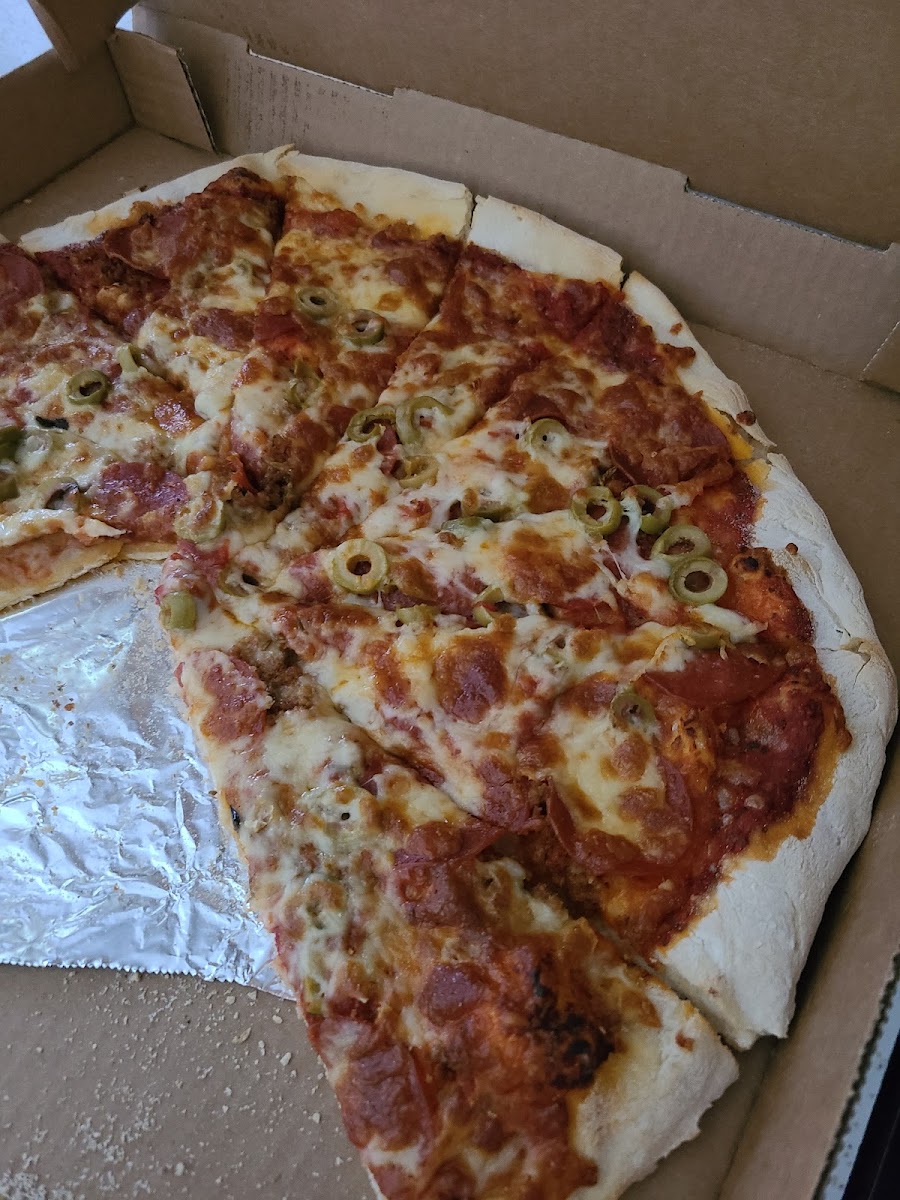 Best pizza in town! Crisp crust, stretchy cheese, great toppings, fantastic homemade crumble sausage, all-around favorite!